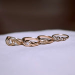 The ring rail is feminine in its shape and branches out into two adorable bands/waves, which wind easily and elegantly around the polished diamond. This twist also means that the ring hugs the finger gently and is comfortable to wear.