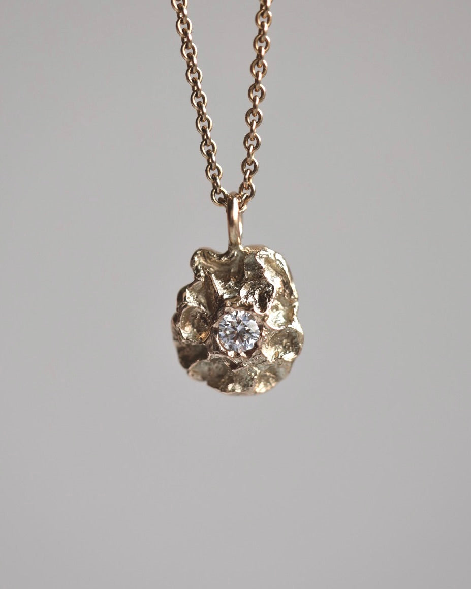 Elegant vedhæng håndlavet i 14 karat massiv genbrugsguld, med en 0.20 ct. Top Wesselton VVS Diamant isat i midten.