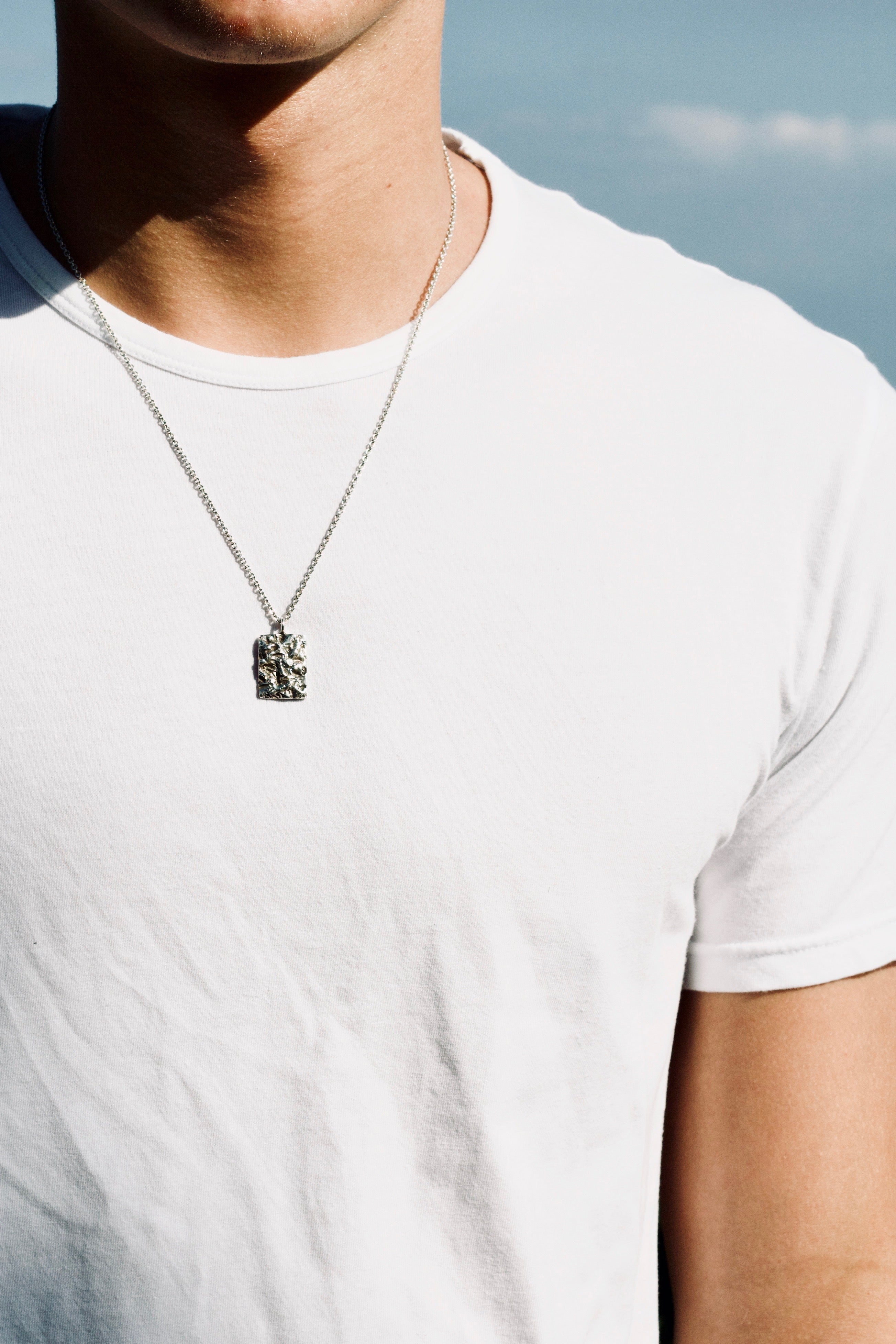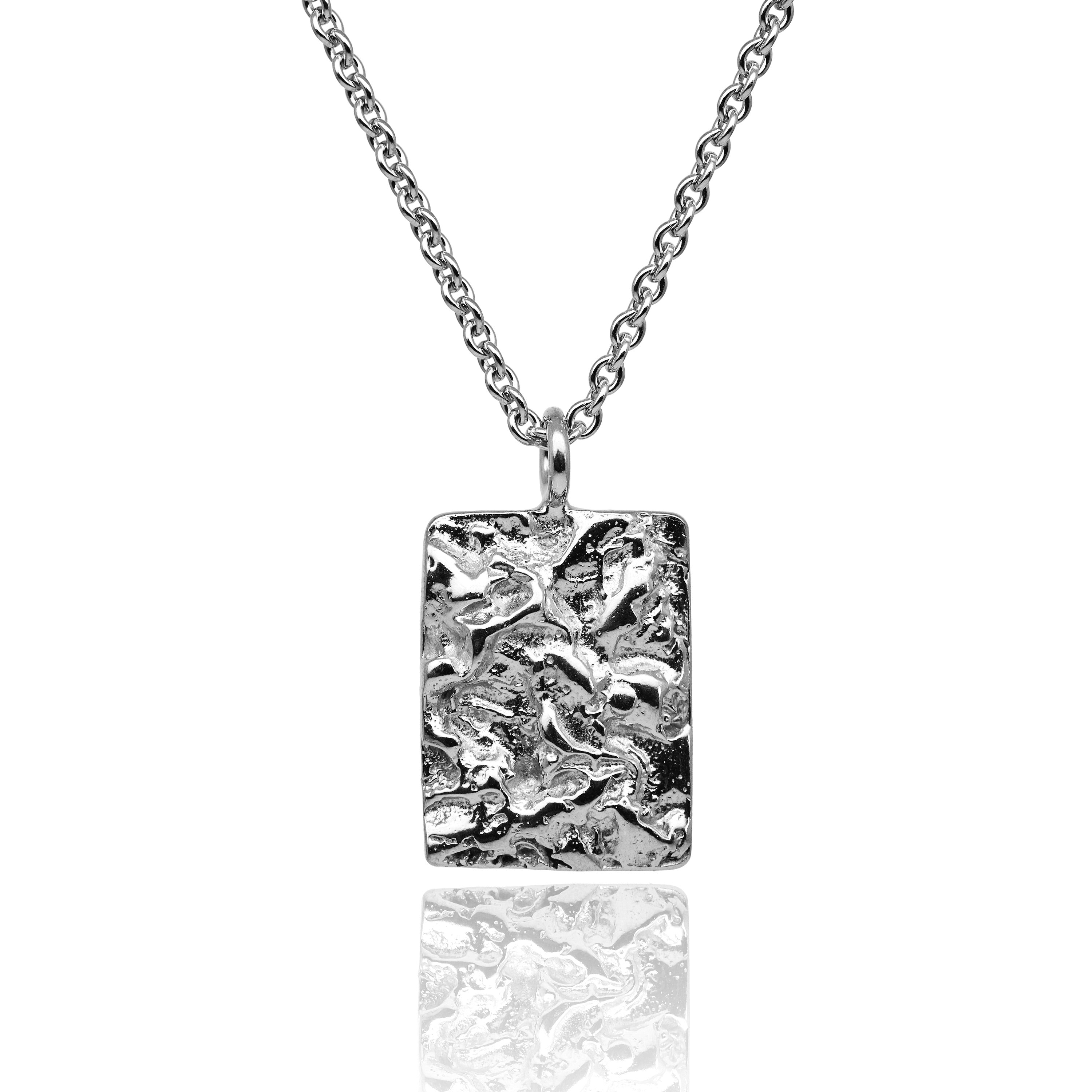 Struktur halskæde til mænd – firkantet tekstur vedhæng med smeltede overflade.